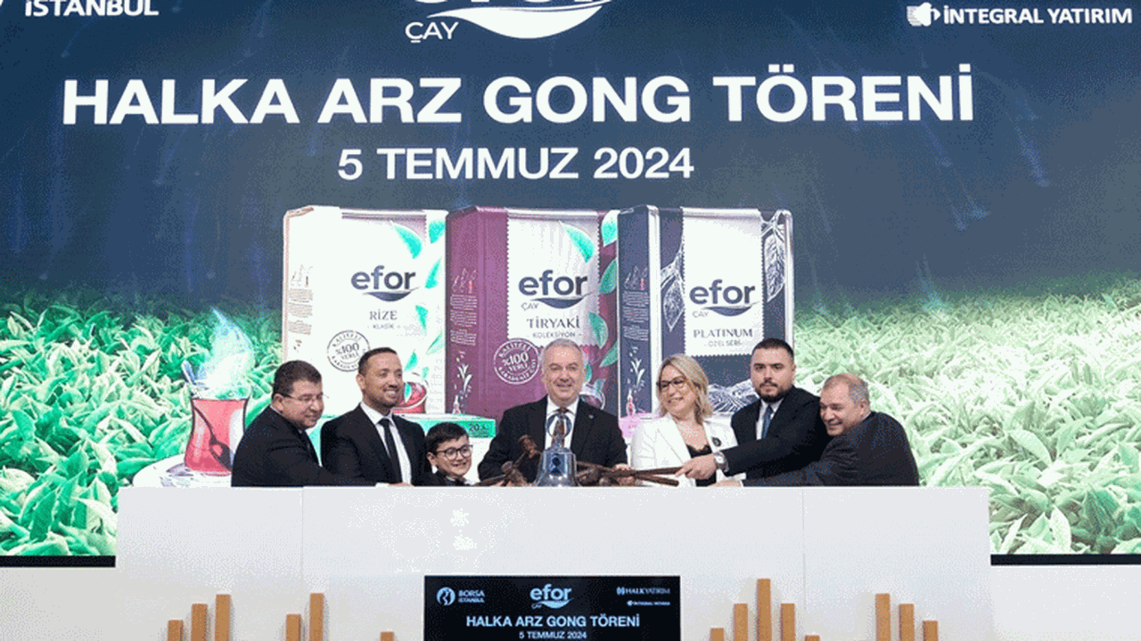 Efor Çay Yönetim Kurulu Başkanı İbrahim Akkuş gong töreninde yaptığı konuşmasında halka arz ile güçlerine ortak olan yatırımcılara ve tüm paydaşlarına teşekkürlerini sunup, şunları kaydetti: “2005 yılında paketleme tesisiyle başlayan çay yolcuğumuzda, bugün Türkiye’nin en büyük çay üreticilerinden biri ve İSO Türkiye’nin İkinci 500 Büyük Sanayi Kuruluşu listesinde yer alan markası haline geldik. Topraktan bardağa kadar tüm süreci sıkı bir şekilde takip edip ‘çayda kaliteden ödün vermeme’ ilkesiyle hareket eden Efor Çay olarak; toplam 49.000 m2’lik dört tesisimizle Türkiye’nin çay ihtiyacının yüzde 10’unu karşılıyoruz. Efor Çay olarak; halka arzımızla birlikte sürdürülebilir, yenilikçi büyümemizi devam ettirerek sektörümüzdeki payımızı ve yatırımlarımızı artırmaya odaklanacağız.
